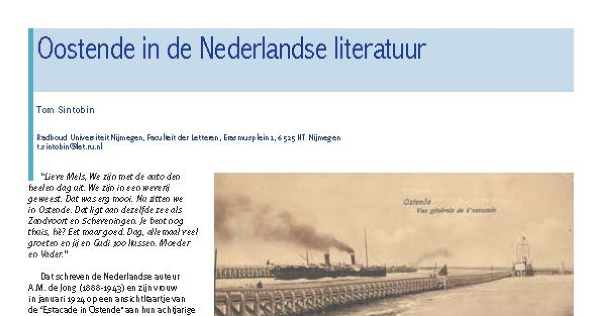 Downloaden Sintobin, T. (2011). Oostende in de Nederlandse literatuur, in: De Grote Rede 29. De Grote Rede: Nieuws over onze Kust en Zee, 29: pp. 9-18 Auteurs Sintobin, T.