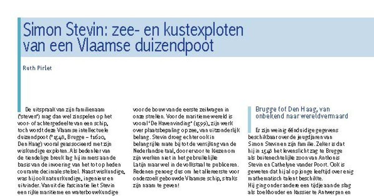 Downloaden Pirlet, R. (2012). Simon Stevin: zee- en kustexploten van een Vlaamse duizendpoot, in: De Grote Rede 32. De Grote Rede: Nieuws over onze Kust en Zee, 32: pp. 9-14 Auteurs Pirlet, R.
