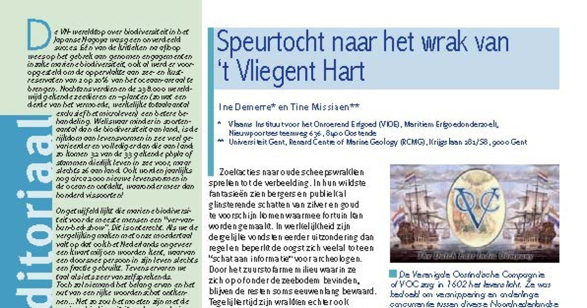 Downloaden Demerre, I. ; Missiaen, T. (2010). Speurtocht naar het wrak van ‘t Vliegent Hart, in: De Grote Rede 28. De Grote Rede: Nieuws over onze Kust en Zee, 28: pp. 2-8 Auteurs Demerre, I. ; Missiaen, T.