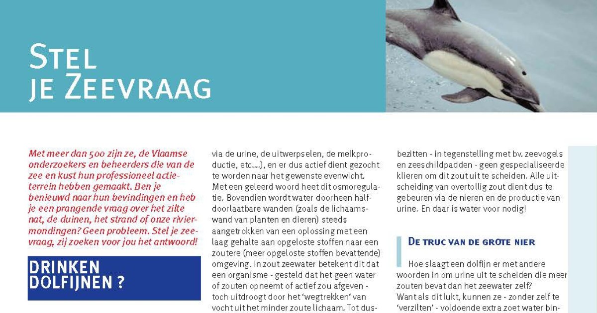 Downloaden Seys, J. (2007). Stel je zeevraag: Drinken dolfijnen?, in: De Grote Rede 19. De Grote Rede: Nieuws over onze Kust en Zee, 19: pp. 22 Auteurs Seys, J.