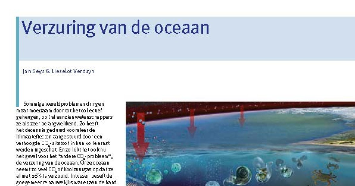 Downloaden Seys, J.; Verduyn, L. (2013). Verzuring van de oceaan, in: De Grote Rede 37. De Grote Rede: Nieuws over onze Kust en Zee, 37: pp. 17-23 Auteurs Seys, J.; Verduyn, L.