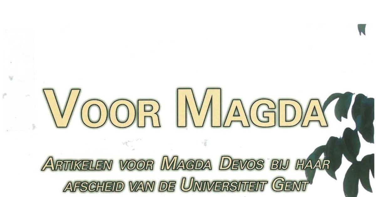 Meer info De Caluwe, J.; Van Keymeulen, J. (Ed.) (2010). Voor Magda: Artikelen voor Magda Devos bij haar afscheid van de Universiteit Gent. Academia Press/Universiteit Gent, Vakgroep Nederlandse Taalkunde: Gent. ISBN 978-90-382-1657-7. 816 pp. Auteurs De Caluwe, J.; Van Keymeulen, J. (Ed.)