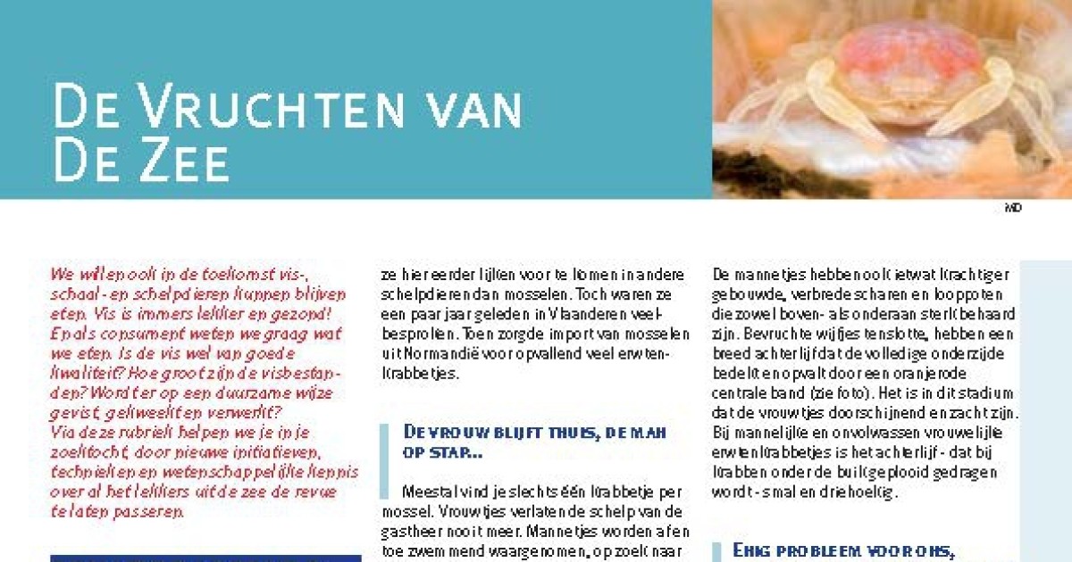 Downloaden Fockedey, N. (2010). Vruchten van de Zee: Een verrassende mosselgast: het erwtenkrabbetje, in: De Grote Rede 26. De Grote Rede: Nieuws over onze Kust en Zee, 26: pp. 28 Auteurs Fockedey, N.