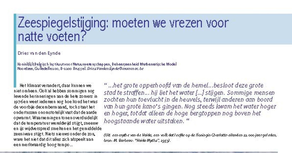 Downloaden Van den Eynde, D. (2011). Zeespiegelstijging: moeten we vrezen voor natte voeten?, in: De Grote Rede 30. De Grote Rede: Nieuws over onze Kust en Zee, 30: pp. 3-9 Auteurs Van den Eynde, D.