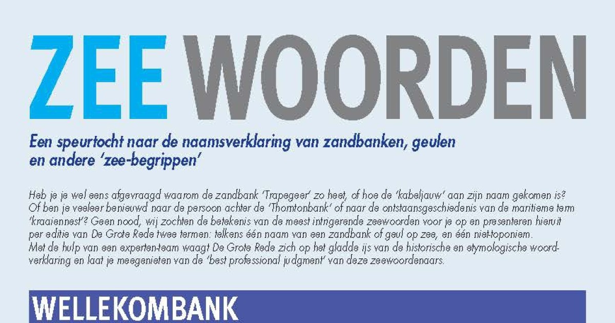 Desnerck, R.; Devos, M.; Fockedey, N.; Haspeslagh, J.; Lanszweert, W.; Seys, J.; Termote, J.; Termote, T.; Van Cauwenberghe, C.; Parmentier, J.; Tys, D.; Zwaenepoel, A. (2012). Zeewoorden: een speurtocht naar de naamsverklaring van zandbanken, geulen en andere 'zee-begrippen'. Wellekombank; Garnaal, in: De Grote Rede 32. De Grote Rede: Nieuws over onze Kust en Zee, 32: pp. 29-32