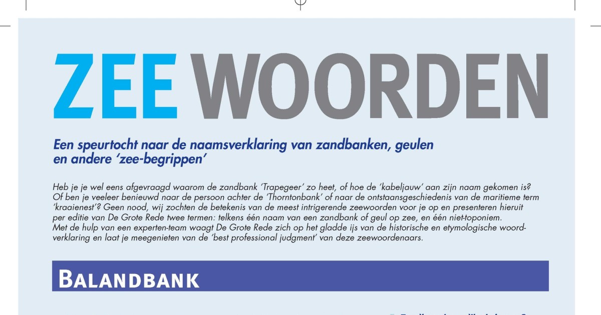 Desnerck, R.; Devos, M.; Fockedey, N.; Haspeslagh, J.; Lanszweert, W.; Seys, J.; Termote, J.; Termote, T.; Van Cauwenberghe, C.; Parmentier, J. (2008). Zeewoorden: een speurtocht naar de naamsverklaring van zandbanken, geulen en andere 'zee-begrippen'. Balandbank; Lij en loef, in: De Grote Rede 22. De Grote Rede: Nieuws over onze Kust en Zee, 22: pp. 26-28