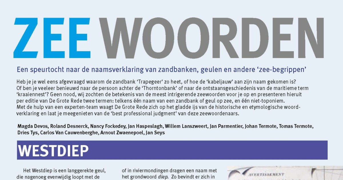 Devos, M.; Desnerck, R.; Fockedey, N.; Haspeslagh, J.; Lanszweert, W.; Parmentier, J.; Termote, J.; Termote, T.; Tys, D.; Van Cauwenberghe, C.; Zwaenepoel, A.; Seys, J. (2013). Zeewoorden: een speurtocht naar de naamsverklaring van zandbanken, geulen en andere 'zee-begrippen'. Westdiep; Sas, in: De Grote Rede 35. De Grote Rede: Nieuws over onze Kust en Zee, 35: pp. 30-33