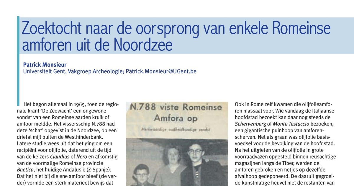 Downloaden Monsieur, P. (2010). Zoektocht naar de oorsprong van enkele Romeinse amforen uit de Noordzee, in: De Grote Rede 26. De Grote Rede: Nieuws over onze Kust en Zee, 26: pp. 10-15 Auteurs Monsieur, P.