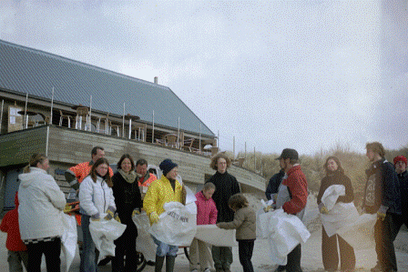 Mensen met een zak bij de hand tijdens Lenteprikkel in Bredene op 27/03/2004