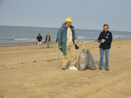 Wandelen met volle vuilniszakken tijdens Lenteprikkel in Knokke op 27/03/2004