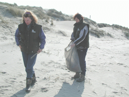 Oprapen van vuilnis tijdens Lenteprikkel in Middelkerke op 27/03/2004