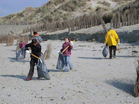 Samen strand opruimen tijdens Lenteprikkel in Nieuwpoort op 27/03/2004