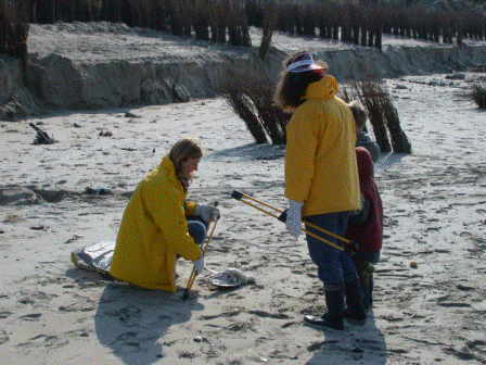 Samen strand opruimen tijdens Lenteprikkel in Nieuwpoort op 27/03/2004