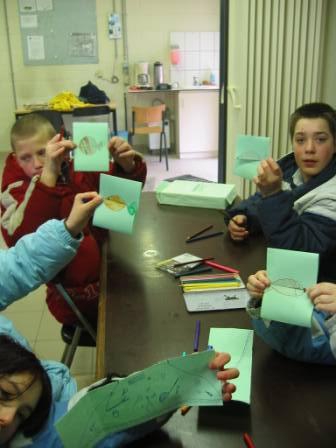 Kinderen knutselen tijdens de Lenteprikkel in Koksijde op 05/03/2005