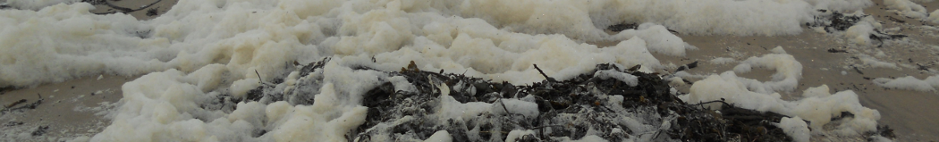Schuim op het strand veroorzaakt door Phaeocystis (Le Portel France: 04/2012)