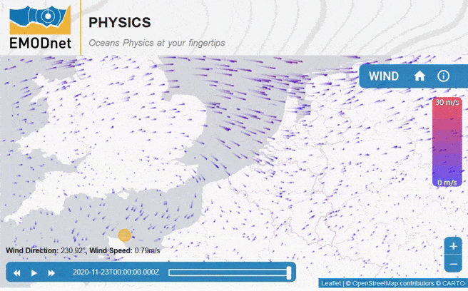 Live wind direction and speed data from EMODnet Physics can be accessed any time. Click on the webviewer to see more.