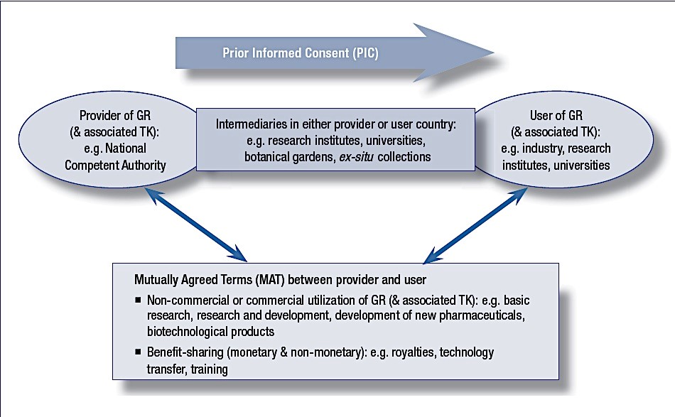 In the context of ABS for GRs, the two main players involved are the provider and the user. The provider is to be understood as a country that is a party to the Nagoya Protocol, and which is “the country of origin of such resources or a Party that has acquired the genetic resources in accordance with the CBD” . The user of GRs is “a natural or legal person that utilizes genetic resources or traditional knowledge associated with genetic resources.”