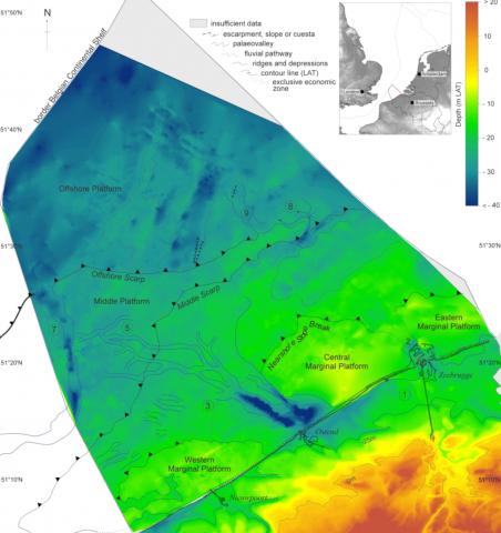 Eind 2015 werd een nieuwe kaart uitgebracht van het offshore Top-Paleogeen oppervlak (vroeger ook wel Top-Tertiair oppervlak genoemd). Dit prehistorisch landschap is opgebouwd uit begraven riviervalleien, geulen en glooiingen alsook rivierterrassen van de vroegere Rijn en Maas. Het is afgedekt door een fragmentarisch sedimentpakket van het Laat-Quartair, een periode gekenmerkt door sterke zeespiegelveranderingen als gevolg van ijstijden en tussenijstijden. Een goede kennis van de verspreiding van deze sedimenten en hun diverse afzettingsmilieus laat toe om een inschatting te maken van de mogelijke bewaring van archeologische en paleontologische resten. Download hier de recente publikatie en bijhorende kaart.