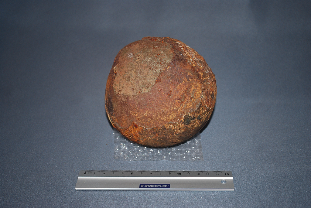 IJzeren kanonbal, gevonden in 2013 op het strand van Wenduine