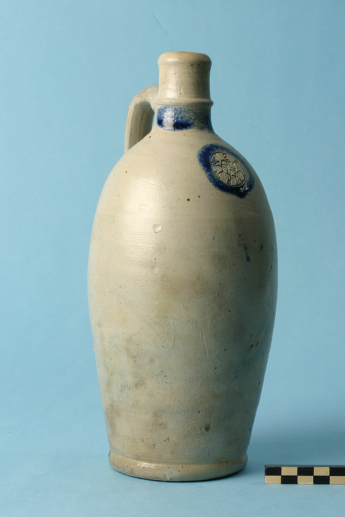 Mineraalwaterkruik in Rijnlands steengoed, midden 18de eeuw, duikonderzoek scheepswraksite op de Buiten Ratel zandbank