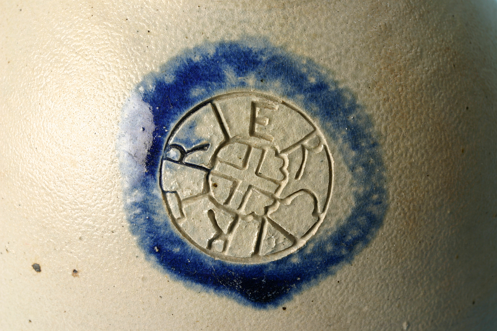 Detail van de stempel van de mineraalwaterkruik waarop TRIER kan worden gelezen