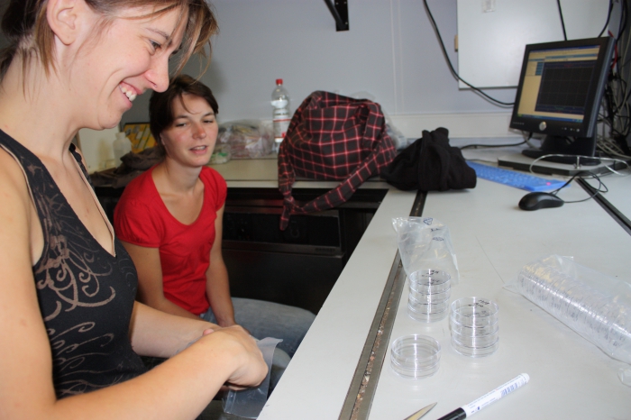 Description Ulrike Braeckman (UGent - Sectie Mariene Biologie) en Sara (UGent - Lab. Protistologie & Aquatische Ecologie)