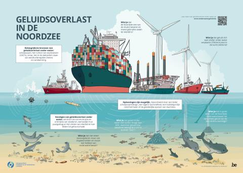 De Noordzee is een van de drukste zeeën ter wereld. Al die menselijke activiteit zorgt voor veel lawaai onder water. Dit kan schadelijke gevolgen hebben voor zeezoogdieren en andere organismen in onze zee. Gelukkig bestaan er maatregelen om geluidsoverlast te beperken. De dienst Marien Milieu (FOD Volksgezondheid) en DG Scheepvaart (FOD Mobiliteit) werkten met de steun van VLIZ en het Belgische Nationaal Decennium Comité samen een campagne uit om geluidsoverlast op zee onder de aandacht te brengen van het brede publiek.