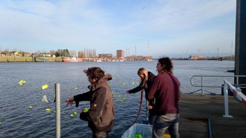 Plastic afval vormt een toenemende bedreiging voor het mariene milieu. Vooral rivieren blijken een belangrijke aanvoerroute te zijn. Bert Teunkens (UAntwerpen – ECOBE) bestudeert de bijdrage van de Schelde tot de wereldwijde plasticsoep. In het 'Track and Trace'-programma PLASTIBE ligt de focus op macroplastics (groter dan 2,5cm) en hoe deze zich in de rivier voortbewegen. Veel variabelen zoals het type polymeer, de vorm, het vermogen om lucht vast te houden, de vegetatie op de rivieroevers, de verminderde stroming in de buurt van de rivierbedding en de windrichting hebben een effect op het gedrag van plastic items in de rivier.
