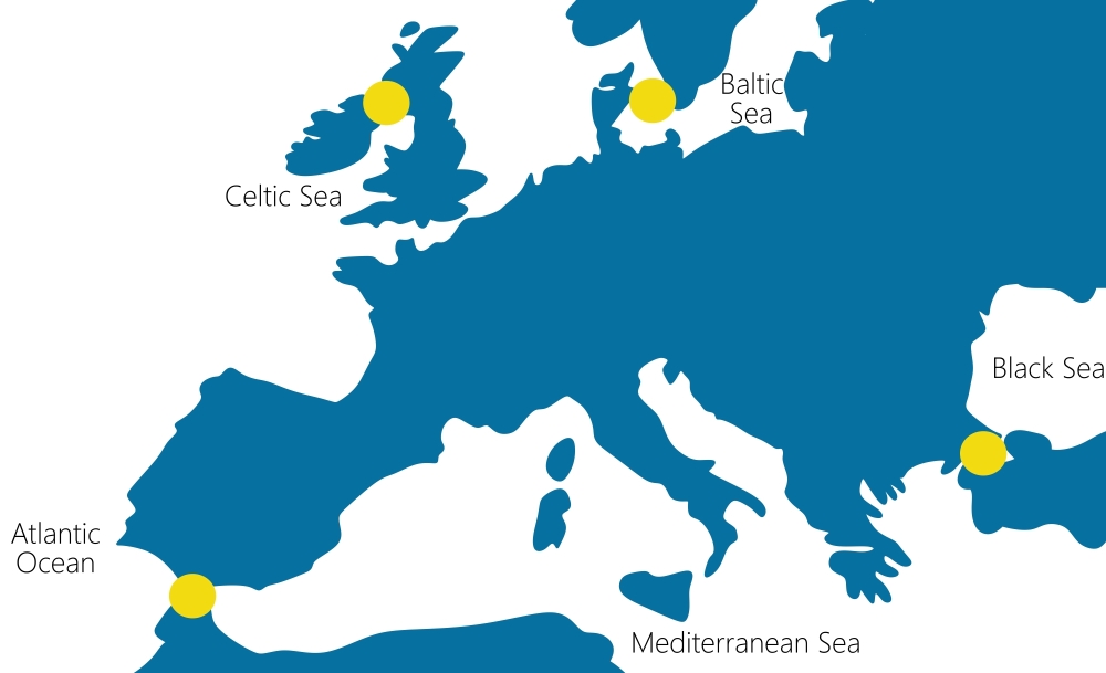 Met het project STRAITS – afkorting voor 'Strategic Infrastructure for improved animal Tracking in European Seas' – wil Europa toonaangevend blijven in het ontwikkelen van gedegen onderzoeksinfrastructuur. Daartoe trok het 3,5 miljoen euro uit van het Horizon Europe Framework Program om de belangrijkste trekroutes van vis en andere zeedieren nog beter in kaart te brengen. STRAITS, dat loopt van 2023 tot en met 2026, zal extra ontvangers installeren op vier strategische plaatsen in Europese zeeën, om zo geluidsignalen van gemerkte voorbij zwemmende vissen te registreren. De locaties voor dit geplande akoestisch telemetrie initiatief zijn in functie hiervan gekozen: (1) de Deense zeestraten tussen de Noordzee en de Baltische Zee), (2) het North Channel in de Ierse Zee, (3) de Straat van Gibraltar tussen de Atlantische Oceaan en de Middellandse Zee, en (4) de Bosporus tussen de Middellandse Zee en de Zwarte Zee.