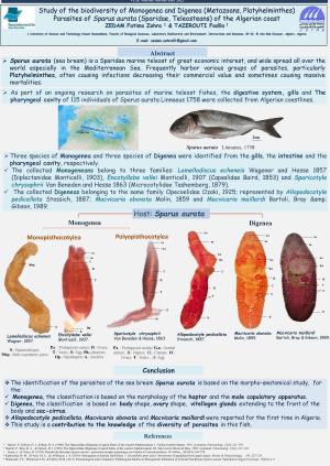 Study of the biodiversity of Monogenea and Digenea (Metazoans, Platyhelminthes) Parasites of Sparus aurata (Sparidae, Teleosteans ) of the Algerian coast