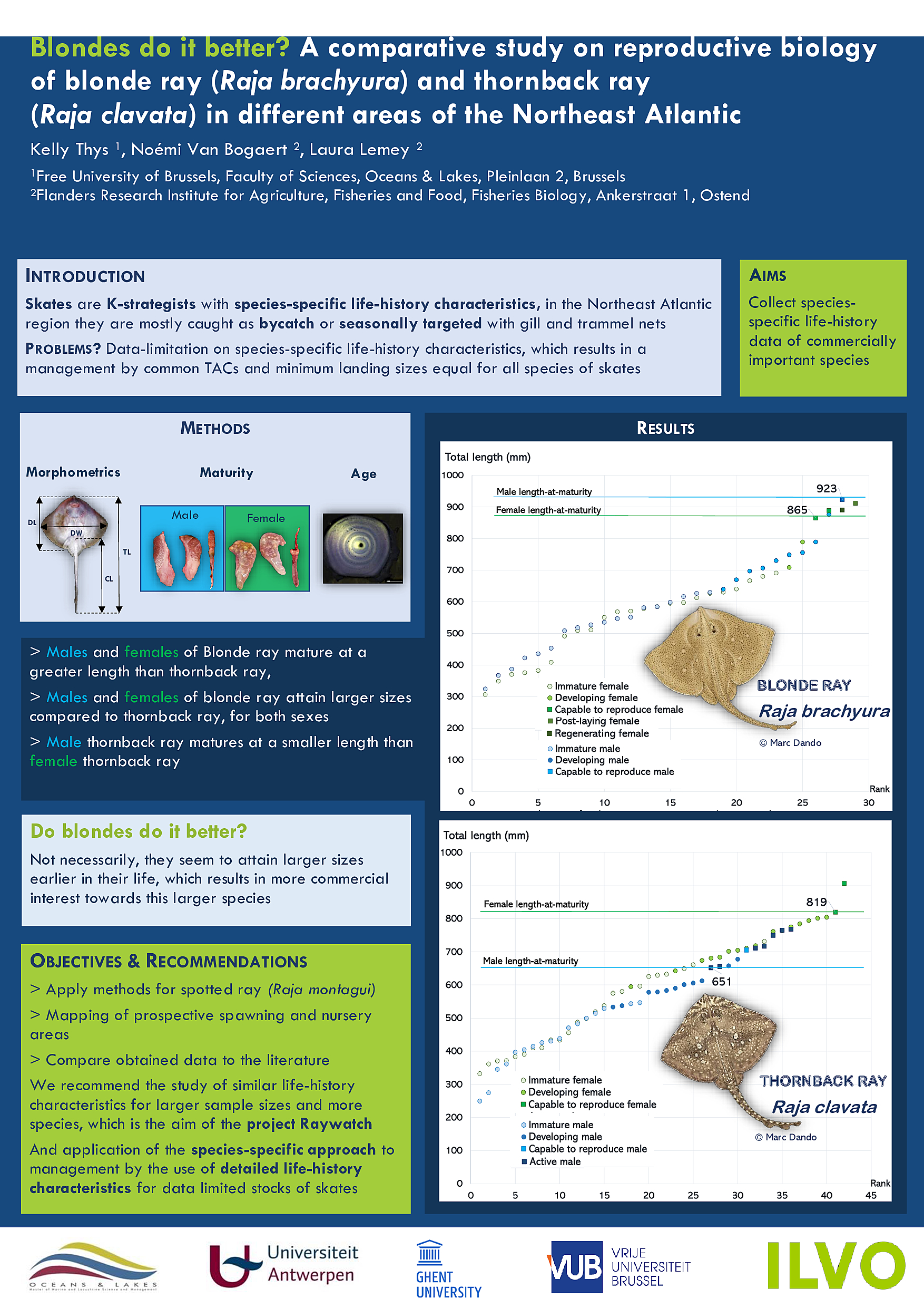 Blondes do it better? A comparative study on reproductive biology of blonde ray (Raja brachyura) and thornback ray (Raja clavata) in different areas of the Northeast Atlantic