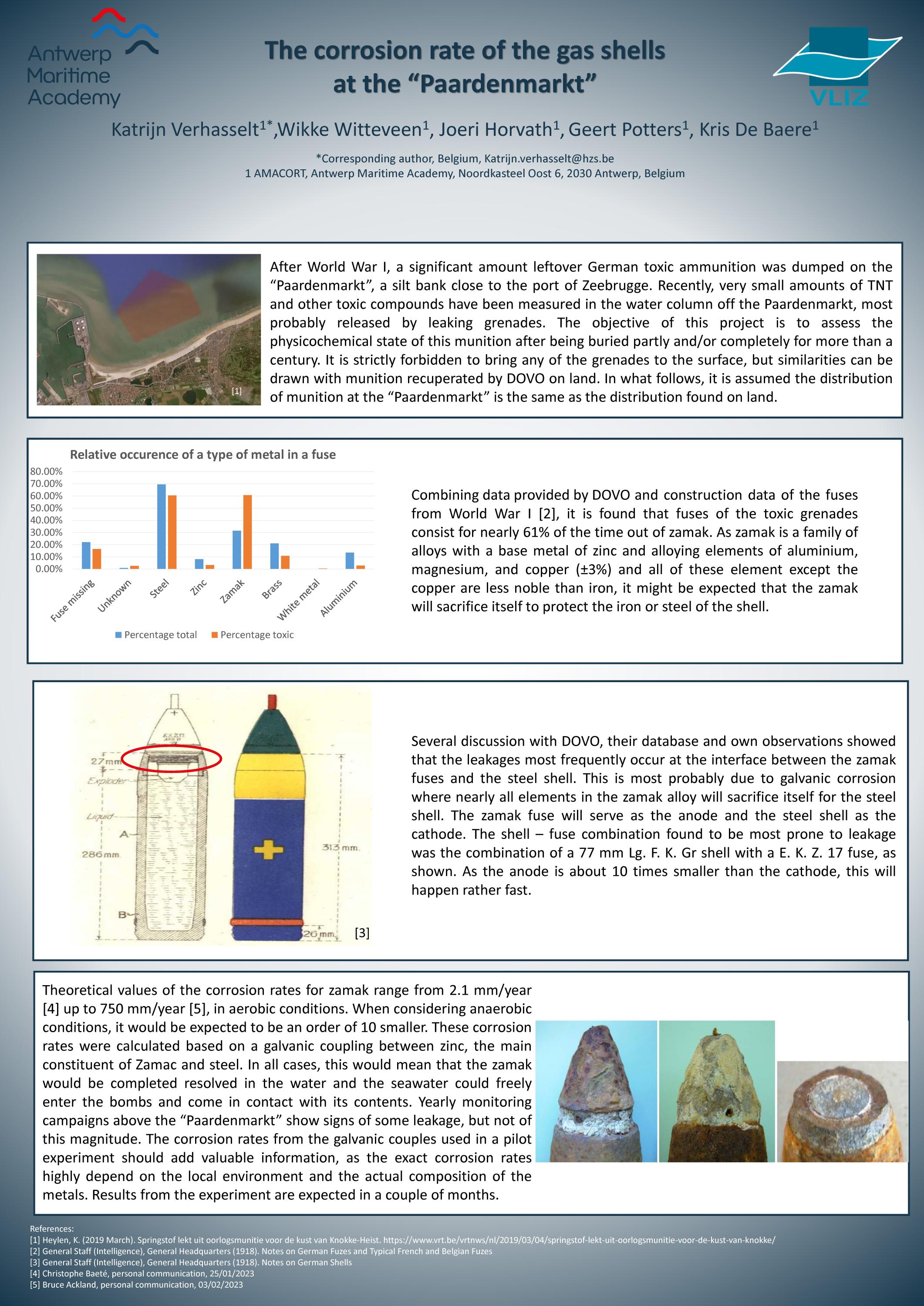 The corrosion rate of the toxic ammunition at the “Paardenmarkt”