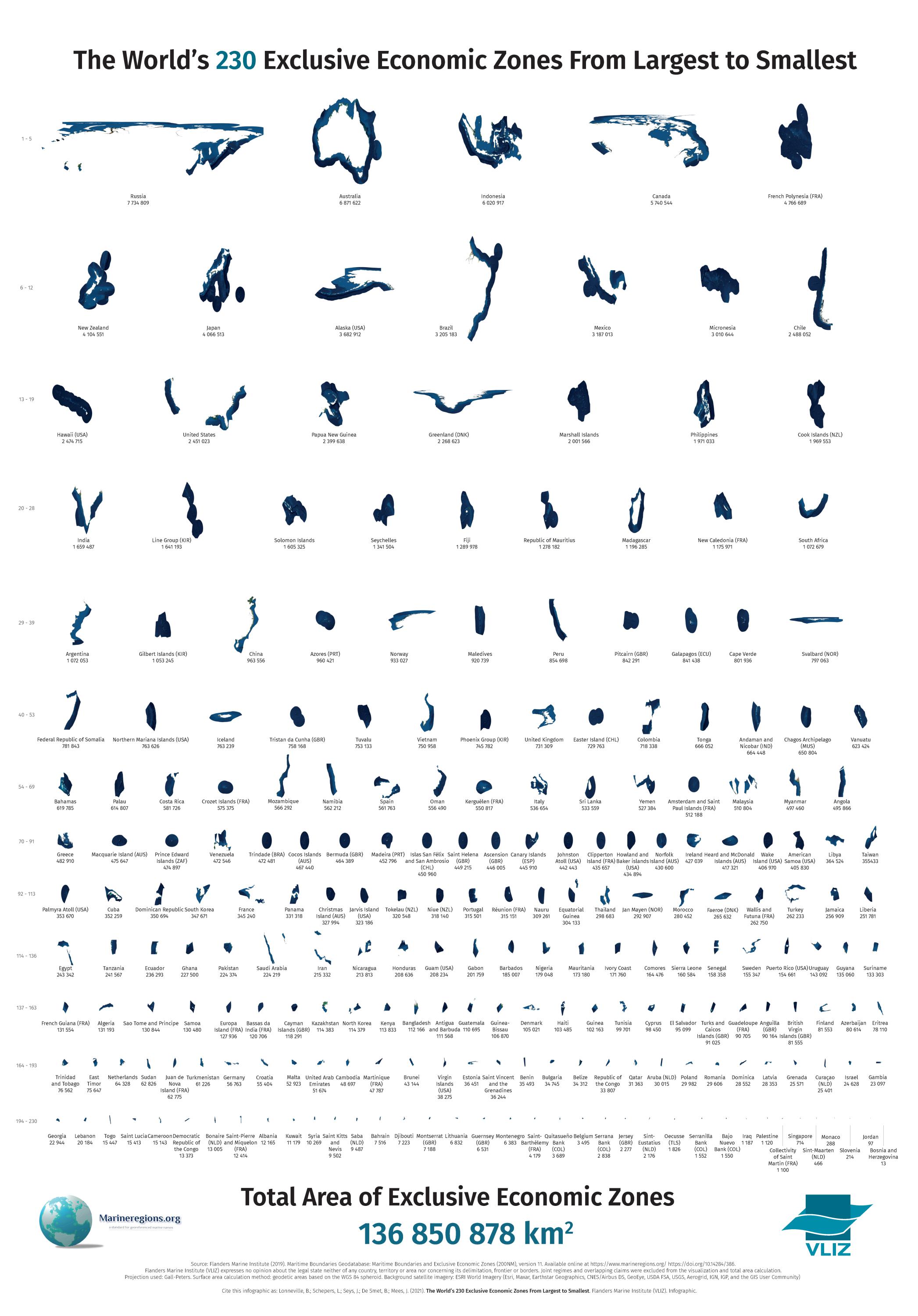 The World’s 230 Exclusive Economic Zones from largest to smallest