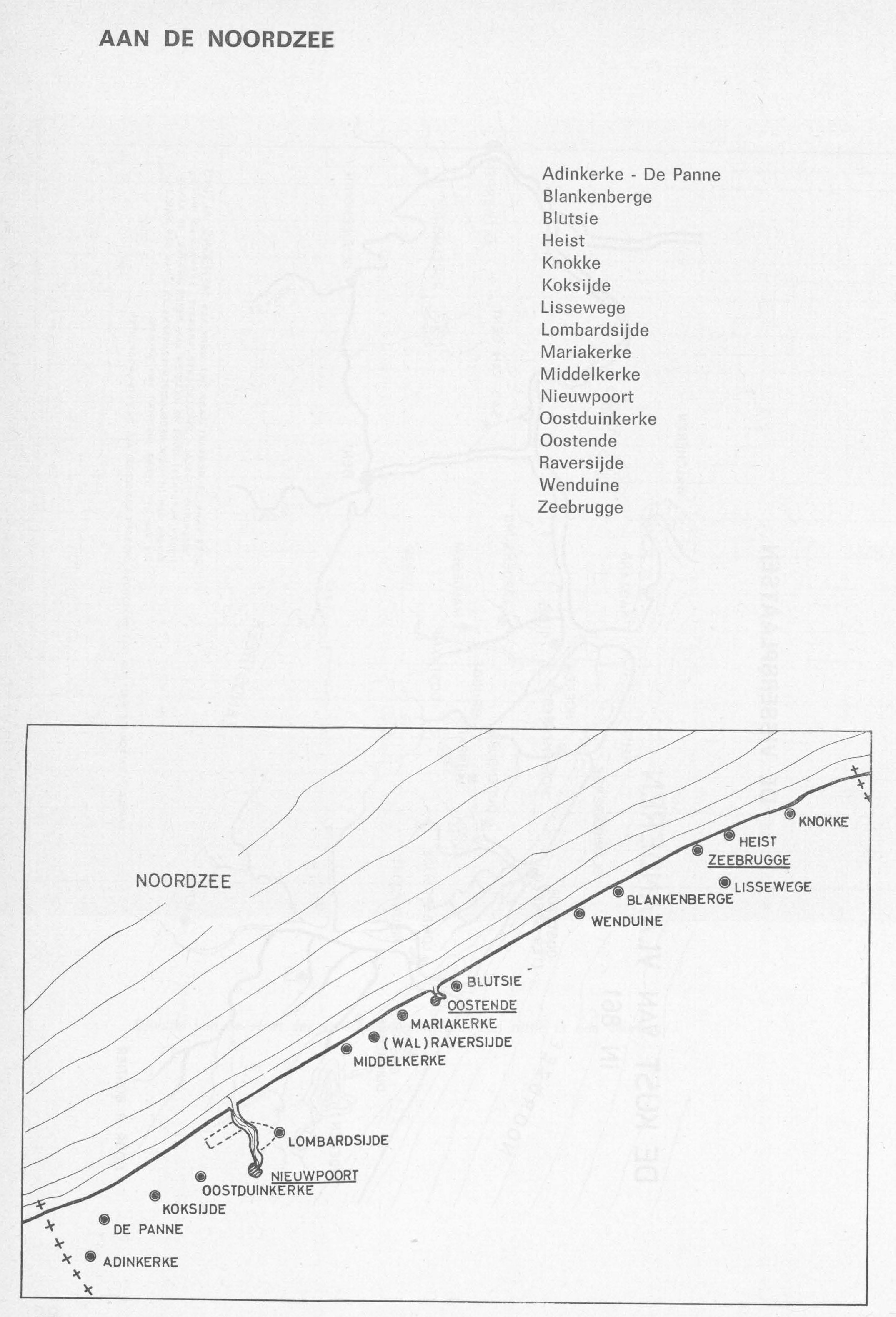 Overzichtskaart van de vissersplaatsen aan de Noordzee.