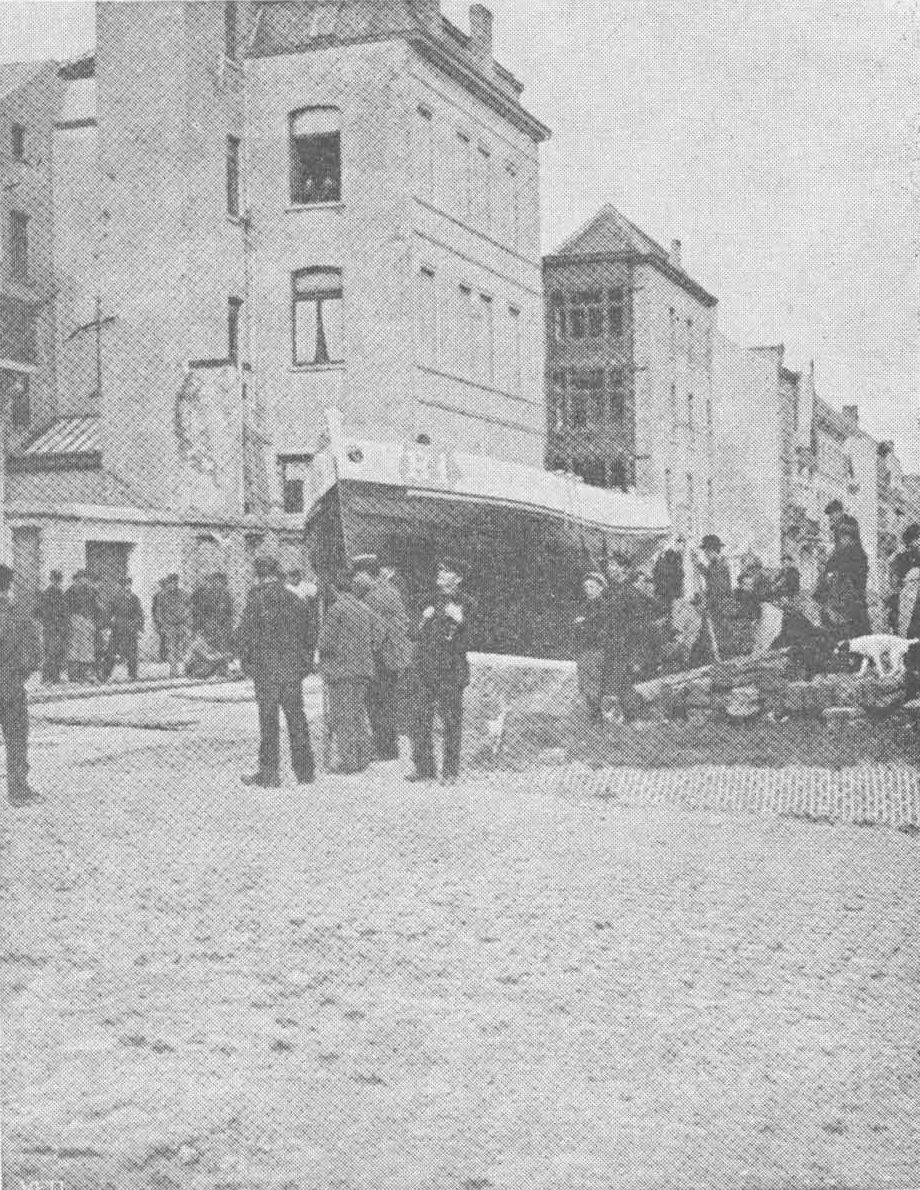 De B.1 klaar voor tewaterlating. Men zal het vaartuig in het dok laten vallen.