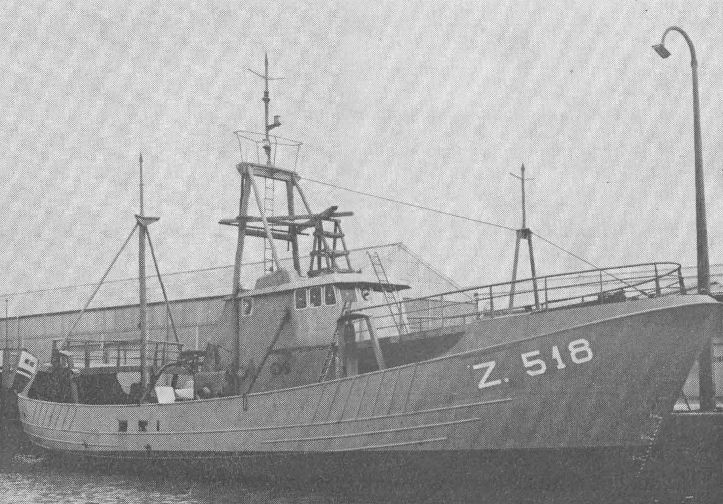 De Z.518 “Cutty Sark”, een echte combinatiekotter, die geen “gatvisserij” toelaat. De bokken zijn er hier niet, wat wijst op een voorkeur voor zijtreilerij.