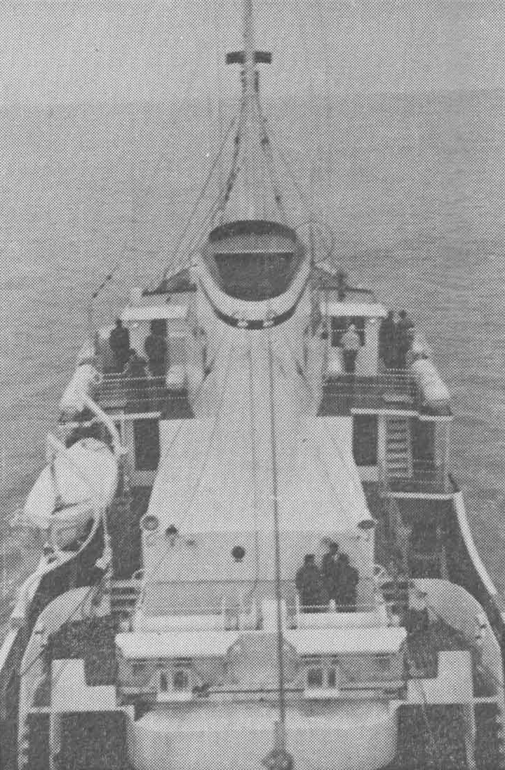 Zicht naar voren met schouw, brug, Elliot-vlotten, enz.