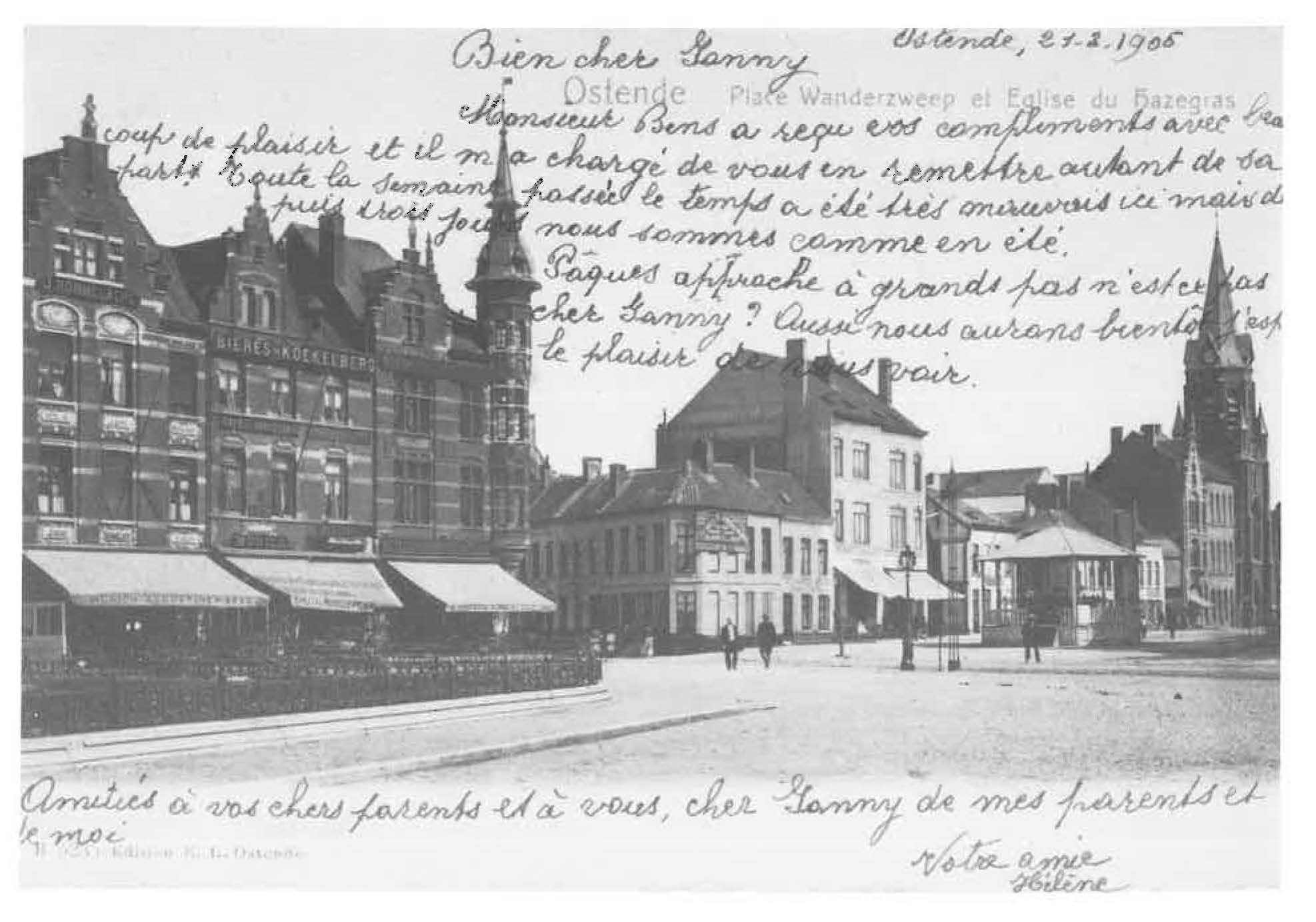 Beschrijving 1905 : Het Vander Sweepplein (thans Ernest Feysplein) Het hoekhuis met spitstoren paalt aan de Oesterbankstraat (zie ook foto nr. 151 ). Het kleine hoekhuis aan de overzijde werd later verbouwd tot het HOTEL DES NEUF PROVINCES (zie ook foto nr. 152). Datum: 1905 Plaats: Oostende Auteur Anoniem in Van Caillie (1983) Uit bron Van Caillie, A. (1983). Oud Oostende in beeld. Published ... Download de volledige versieDownload de volledige versie