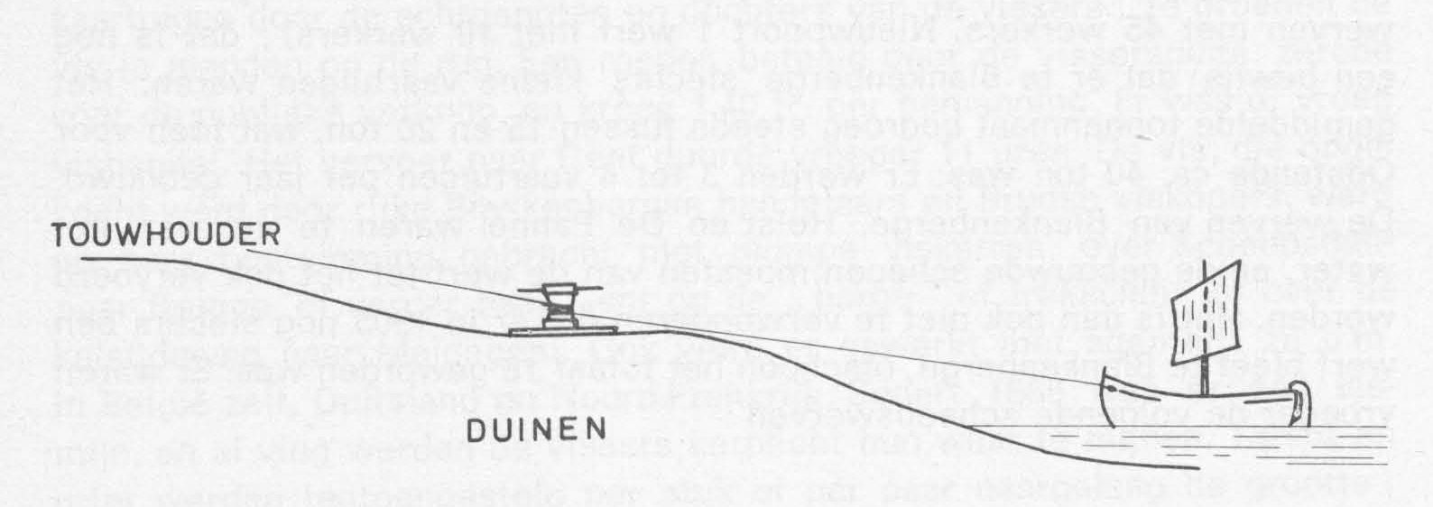 Werf “Antoon Daele” te Blankenberge naast het oostelijke staketsel. De schuit werd door middel van de grote zware kaapstander het strand tot tegen de duinen opgetrokken.