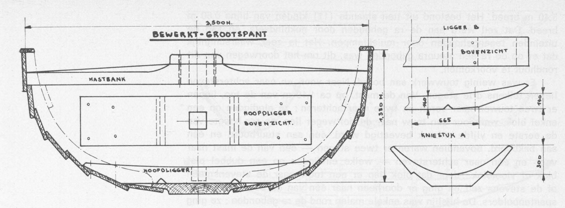 Bewerkt grootspant (spant op de grootste breedte). Doorsnede schip.