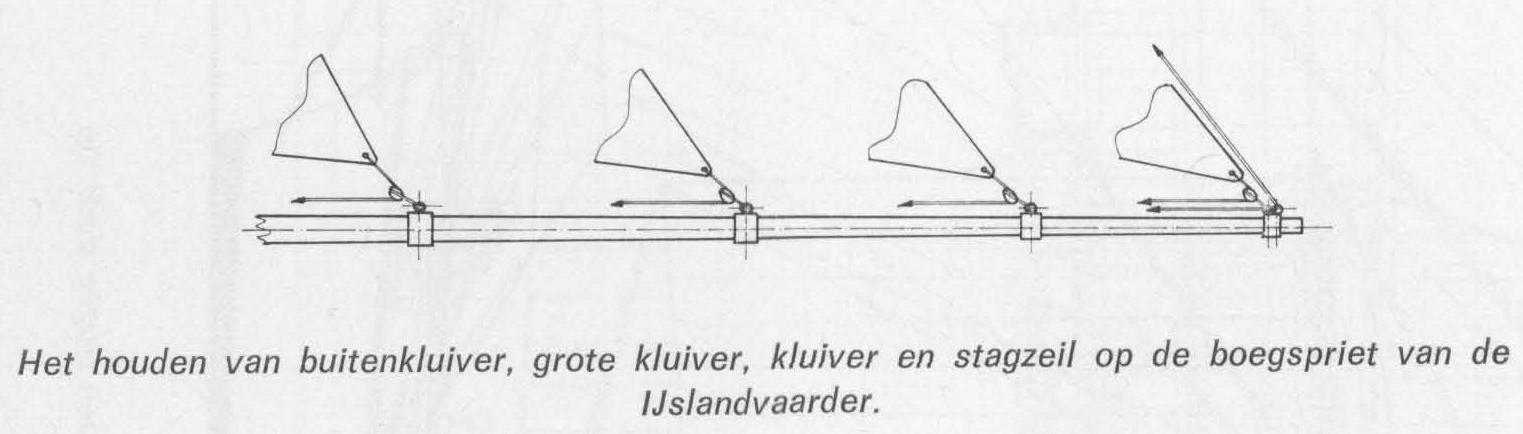 Beschrijving Het houden van buitenkluiver, grote kluiver, kluiver (langsscheeps driehoekig zeil door de kluiverboom uitgehouden) en stagzeil (zeil aan een stag (zwaar touw dat een rondhout langsscheeps steunt) gevoerd) op de boegspriet (rondhout voor de voorsteven) van de IJslandvaarder.