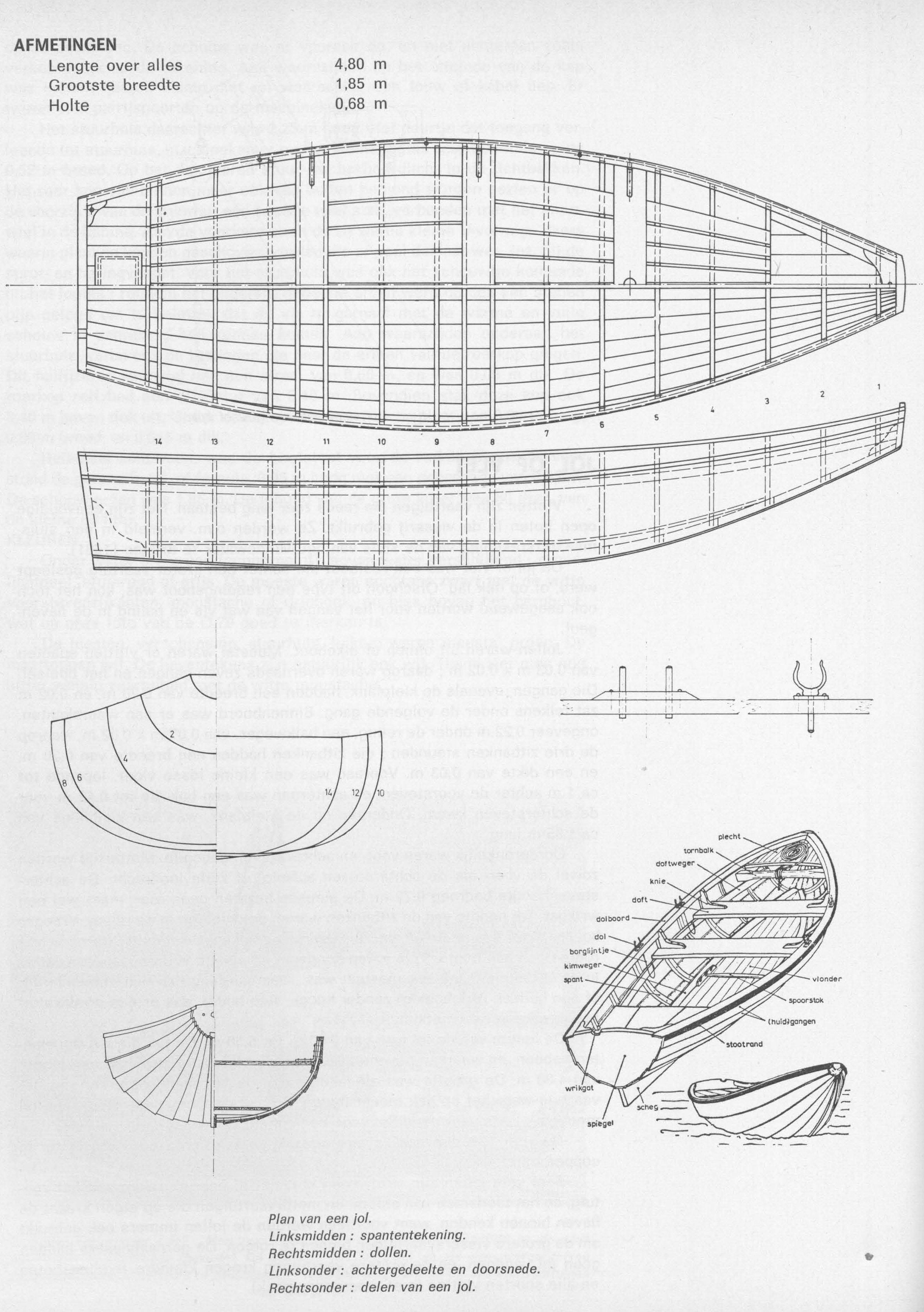 Beschrijving Plan van een jol of vlet, eenvoudige open boot in de visserij gebruikt.