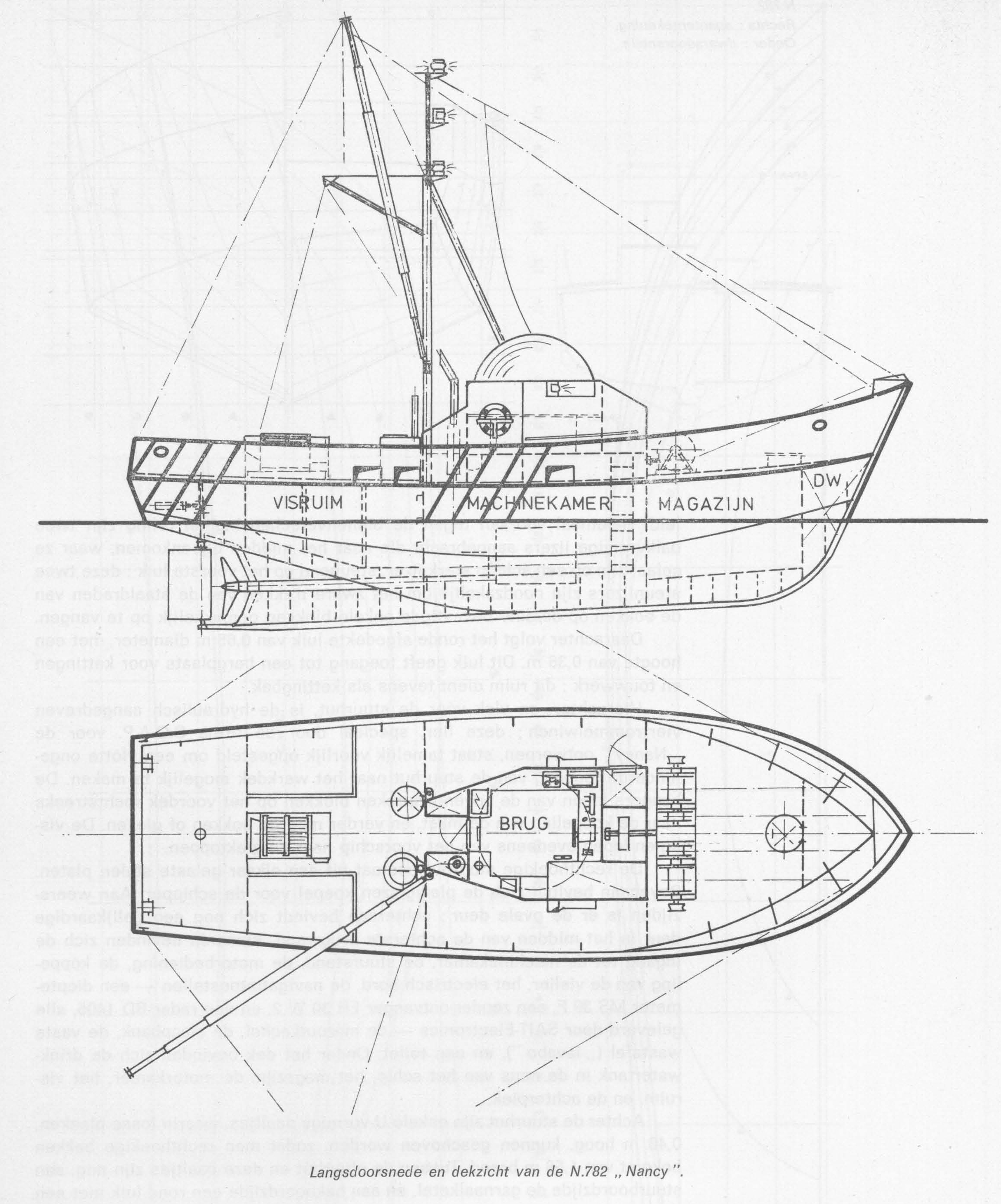 Langsdoorsnede en dekzicht van de N.782 “Nancy”.
