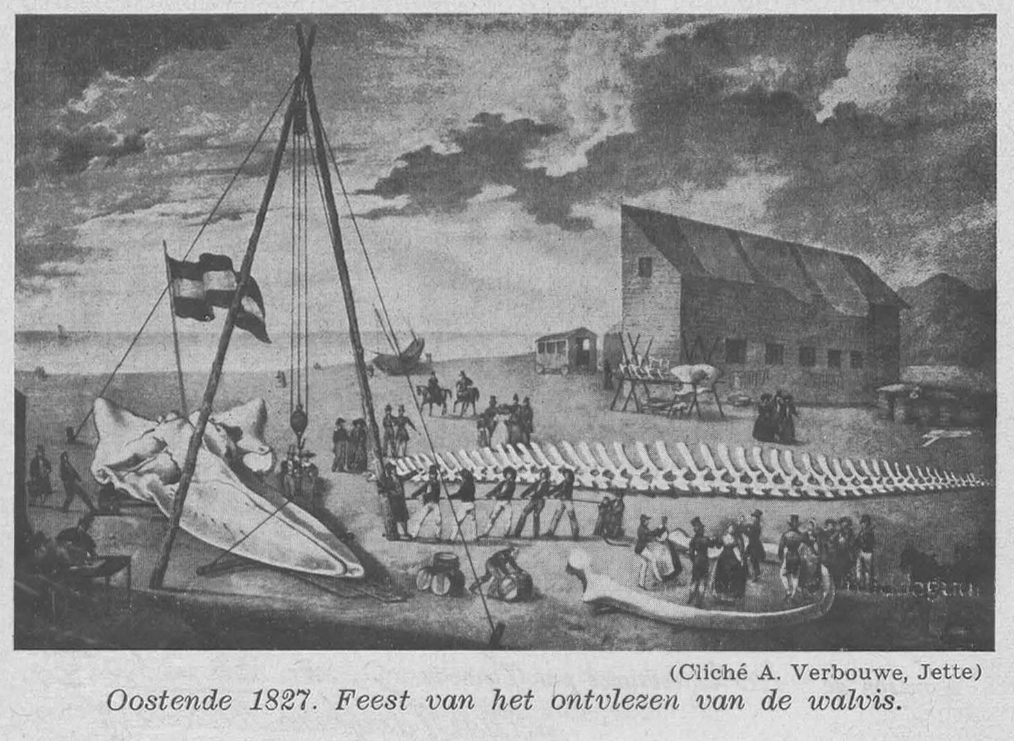 Feest van het ontleden van een walvis op 4 november 1827 te Oostende. Een aantal Oostendse vissers vingen een 27 meter lange, drijvende walvis. Deze werd door hen naar het strand gebracht en openbaar verkocht. Het was de grootste walvis die tot dan toe in de Nederlanden te zien was geweest. Na de ontleding werd hij voor geld tentoongesteld.