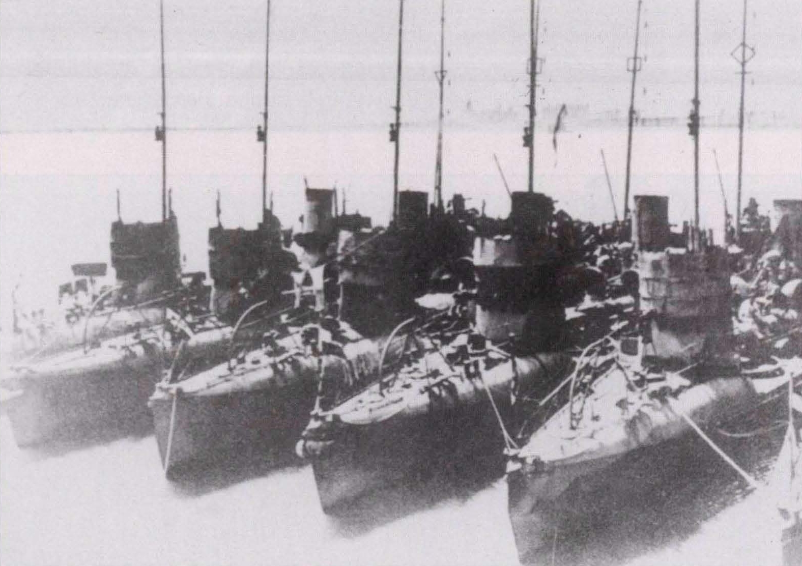 Eine Anzahl von Torpedobooten im Hafen von Zeebrügge einige Tage vor dem Angriff am St.-George’s-Day.