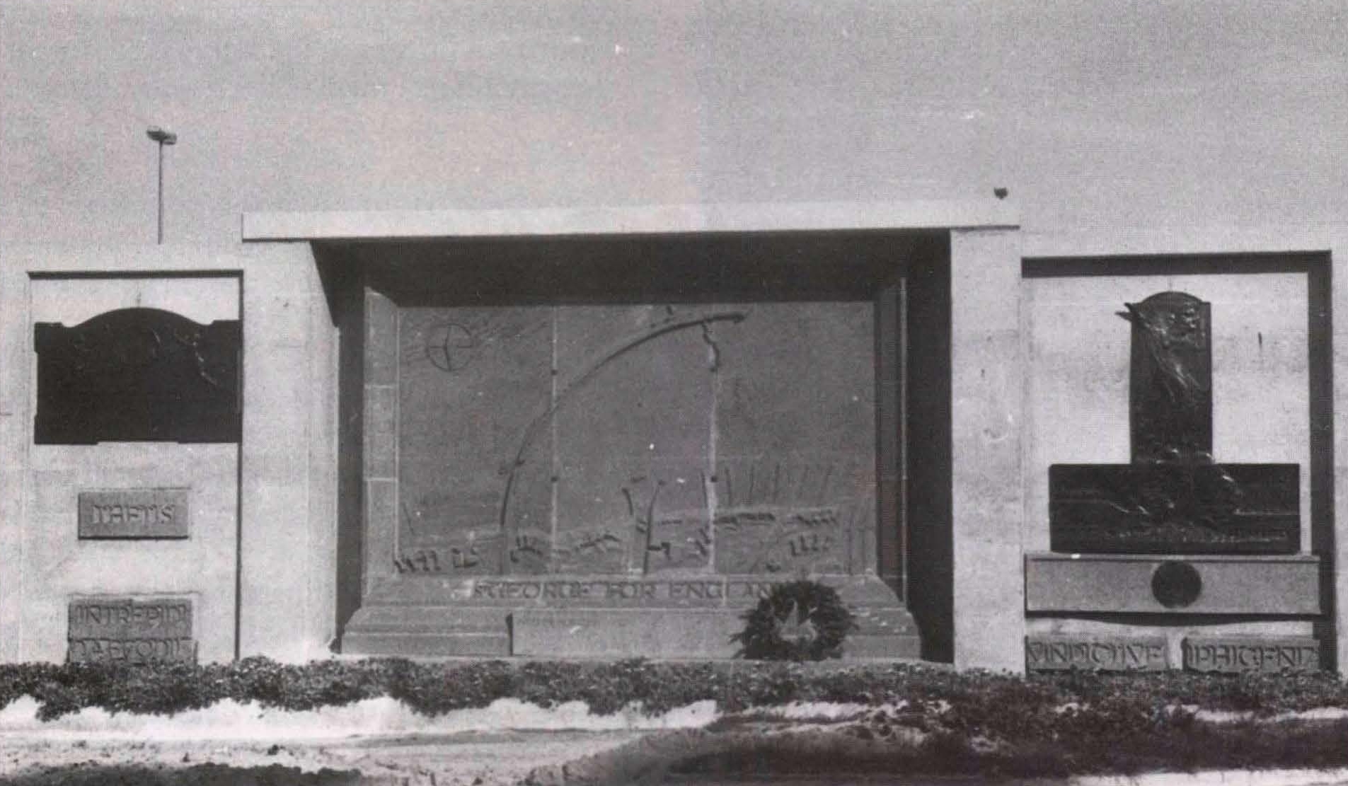 Das Zeebrügger Denkmal auf der Höhe des alten Hafendammes. Die Gedenkplatte in der Mitte zeigt eine Karte vom Hafen und die Position der Blockschiffe. (Sammlung Johan Ryheul)