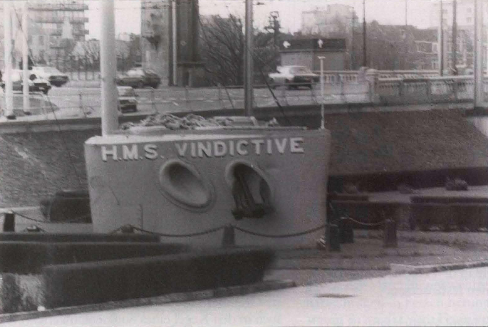 Das Denkmal der VINDICTIVE in Ostende. Es besteht aus dem Bug und zwei Masten des Blockschiffes. (Sammlung Johan Ryheul)