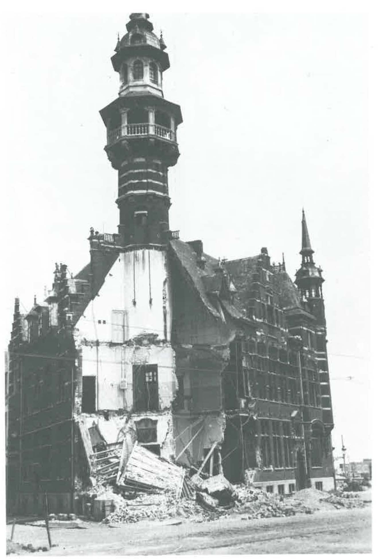 Beschrijving 1940-1945. De TWEEDE WERELDOORLOG. Het ZEEVAARTCOMMISSARIAAT, gelegen op de hoek van de Zuidstraat (links) en de Vindictivelaan (rechts). Het gebouw werd gedeeltelijk vernield tijdens de bombardementen van mei 1940 en nooit volledig hersteld. Plaats: Oostende Auteur J. Demeester in Van Caillie (1989) Uit bron Van Caillie, A. (1989). Oud Oostende in beeld 4. Publishe... Download de volledige versieDownload de volledige versie