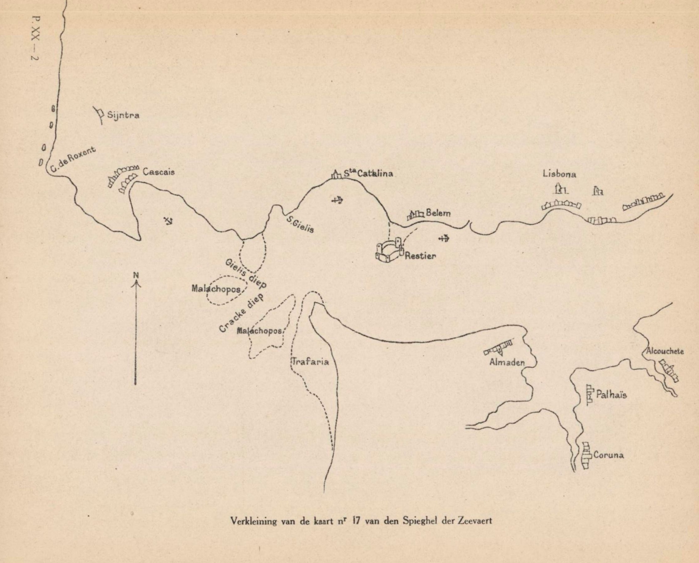 Kaart van de monding van den Taag, van af de Siërra de Cintra tot Lissabon. Verkleining van de kaart n