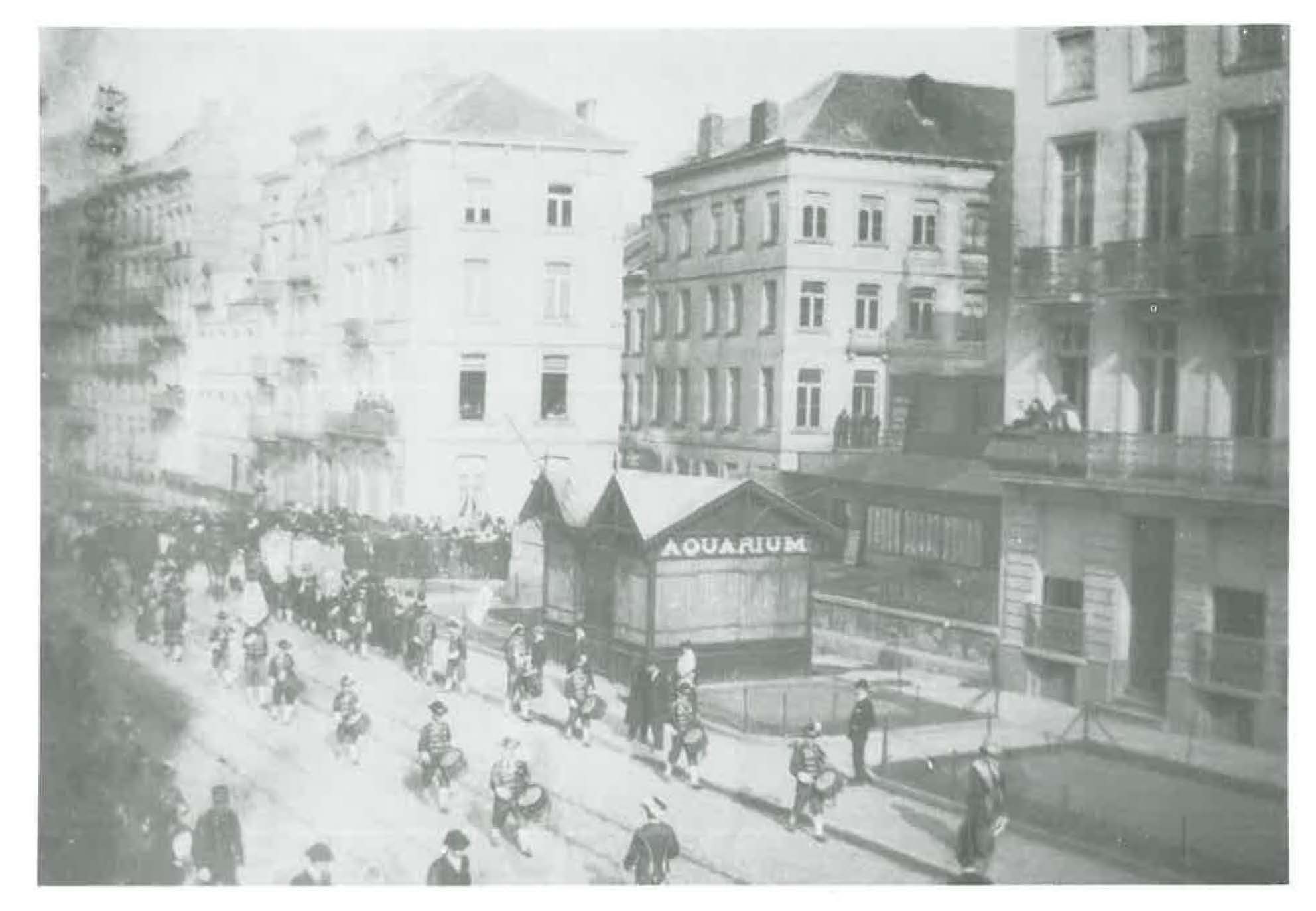 Beschrijving 1907 : De Van lseghemlaan met de ingang van het bekende aquarium, dat ondergronds gelegen was Op die plaats bevindt zich thans het Hotel WESTMINSTER. Op de foto ook een beeld van de grote vastenstoet van 1 april 1907. Datum: 1 april 1907 Plaats: Oostende Auteur Anoniem in Van Caillie (1983) Uit bron Van Caillie, A. (1983). Oud Oostende in beeld. Published ... Download de volledige versieDownload de volledige versie